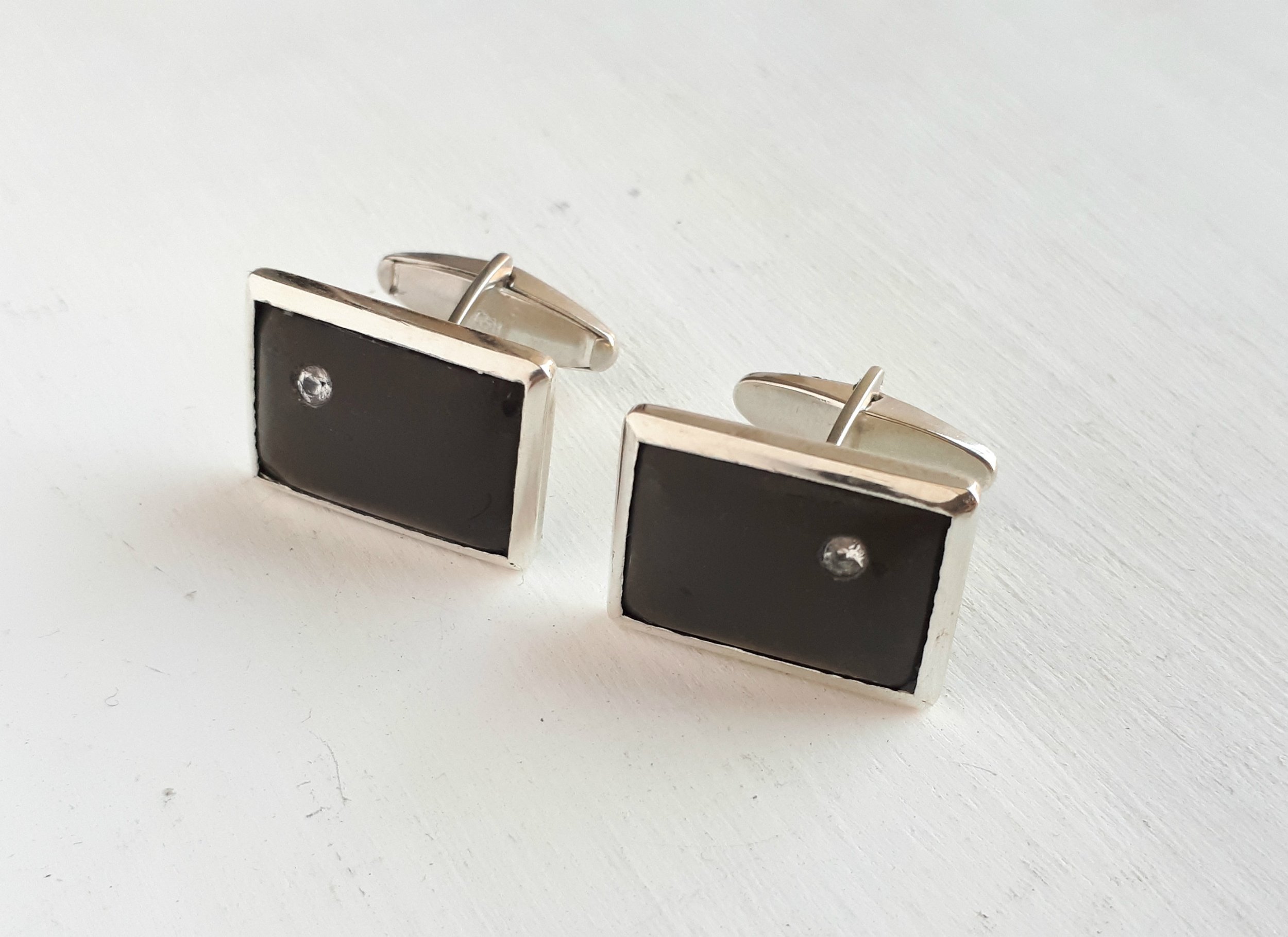 .925 silver limestone and cubic zirconia cufflinks