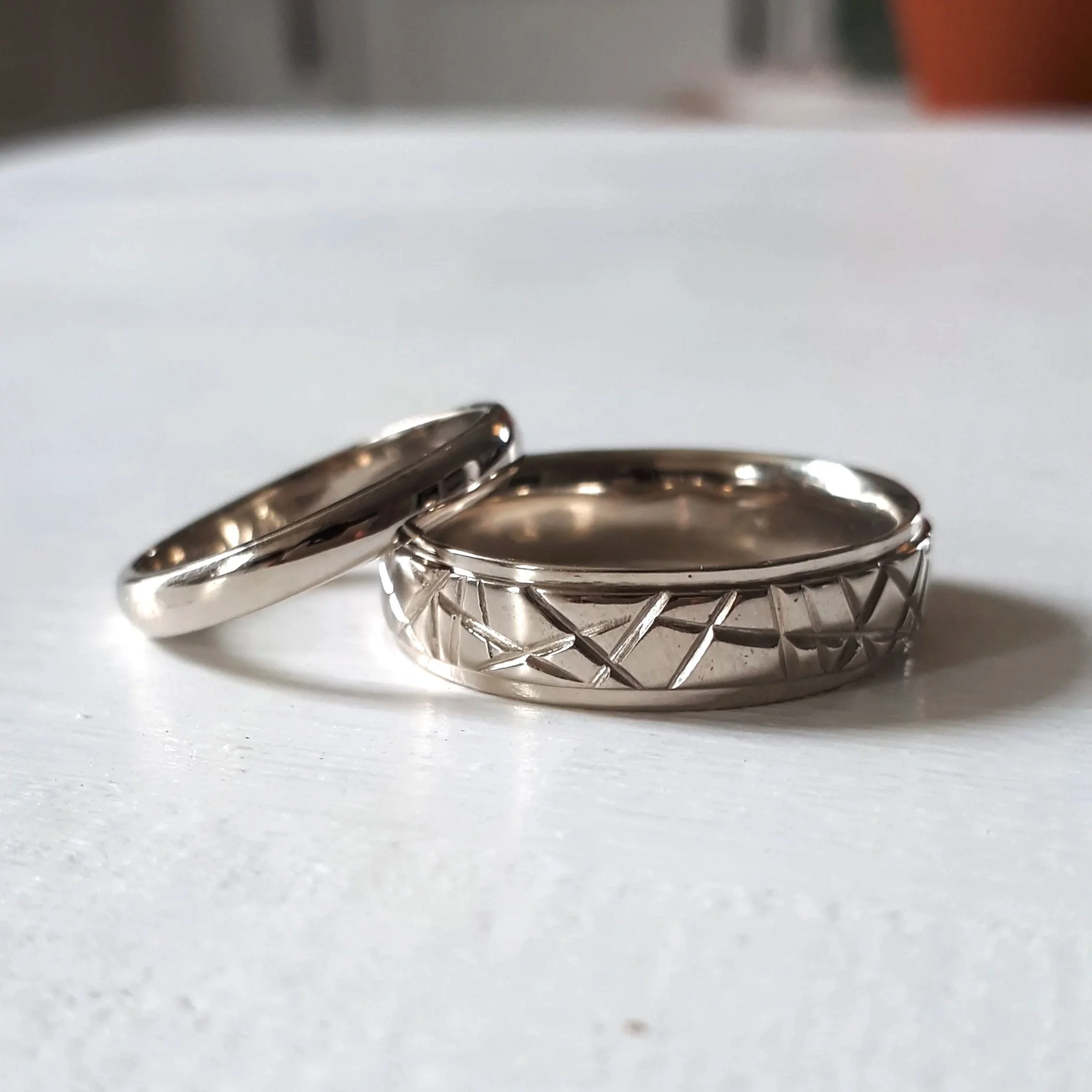 14kt white gold edged wedding band