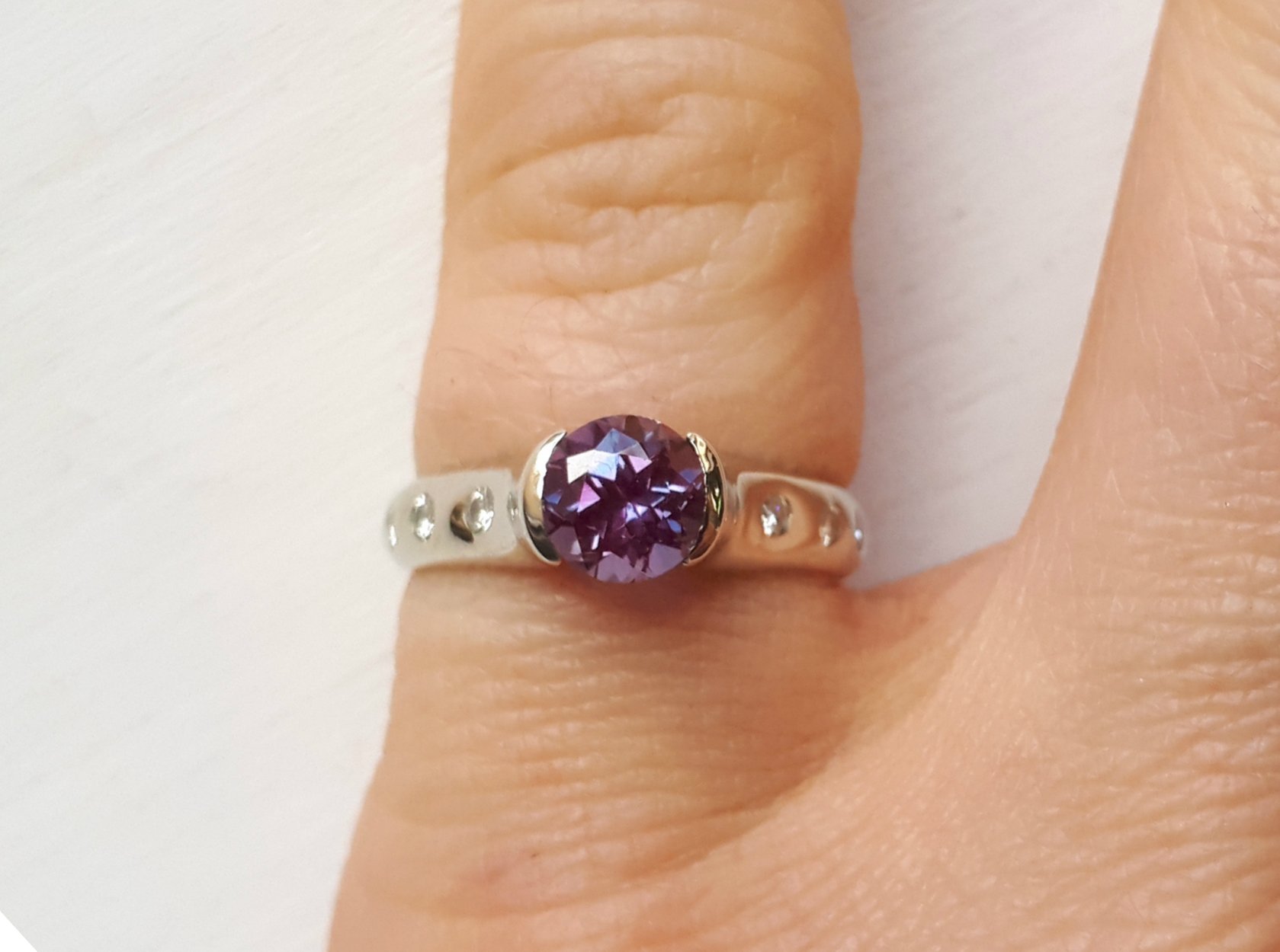 14kt white gold and lab alexandrite ring